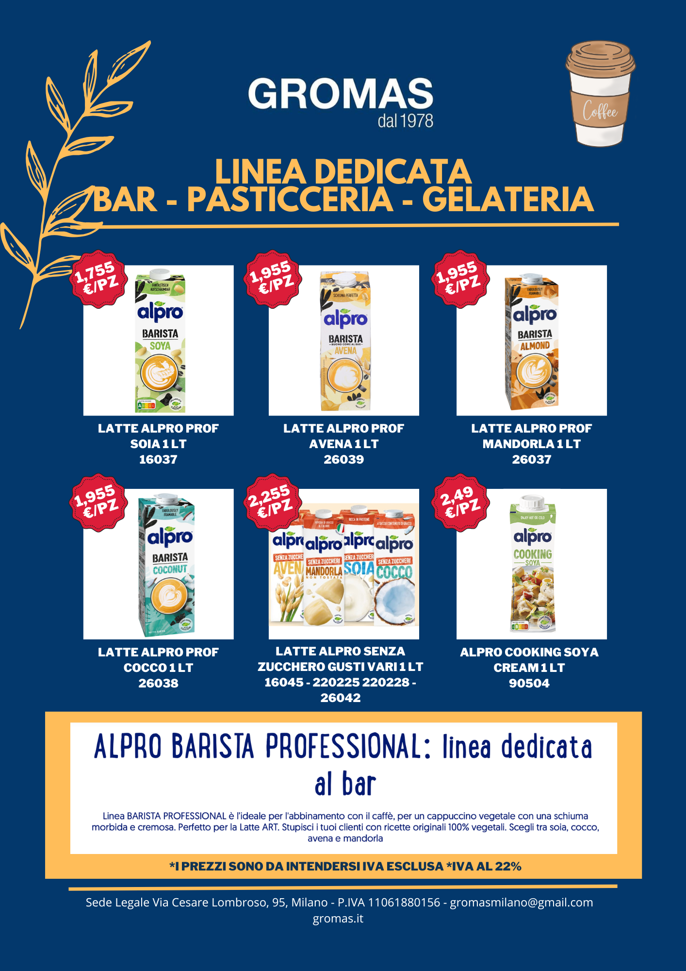 Partner Granarolo e partner Danone per Alpro Barista, dall’inizio della nostra attività abbiamo integrato numerose referenze in accordo con le esigenze dei nostri clienti.